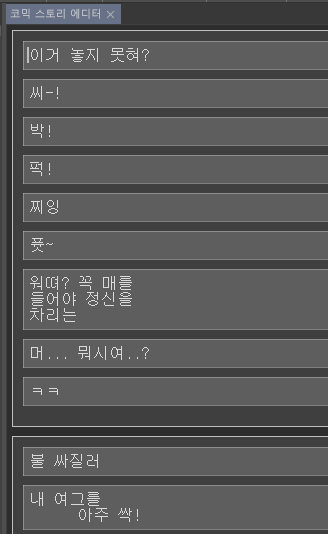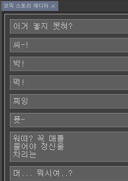 수정을 칸에다가 하면, 실제 풍선글씨에 바로 반영된다.