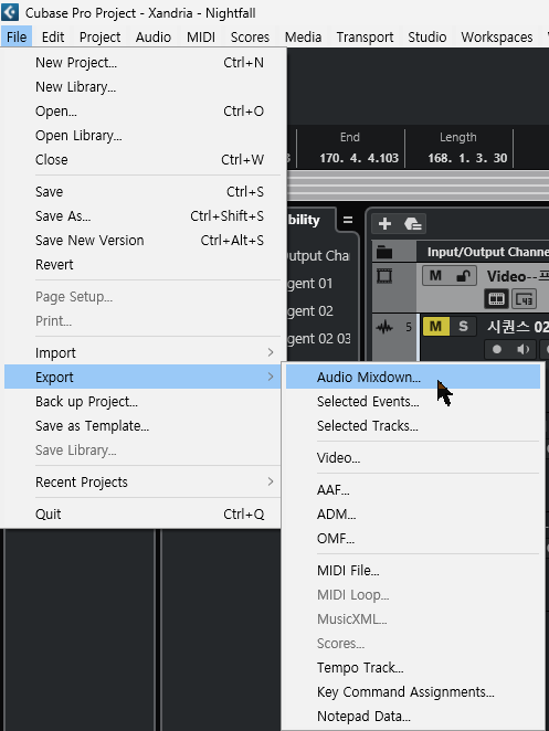 우선 내보낼 트랙만 오디오르 솔로로 S 버튼 누르기