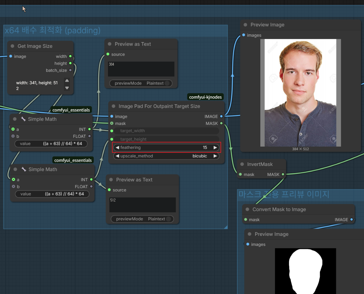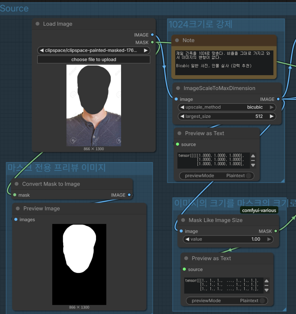 - 참조 이미지(예: 얼굴 사진)를 워크플로우에 넣으면, 노드가 자동으로 그 이미지를 캔버스 크기에 맞춰 스케일링(크기 조정) 해요.