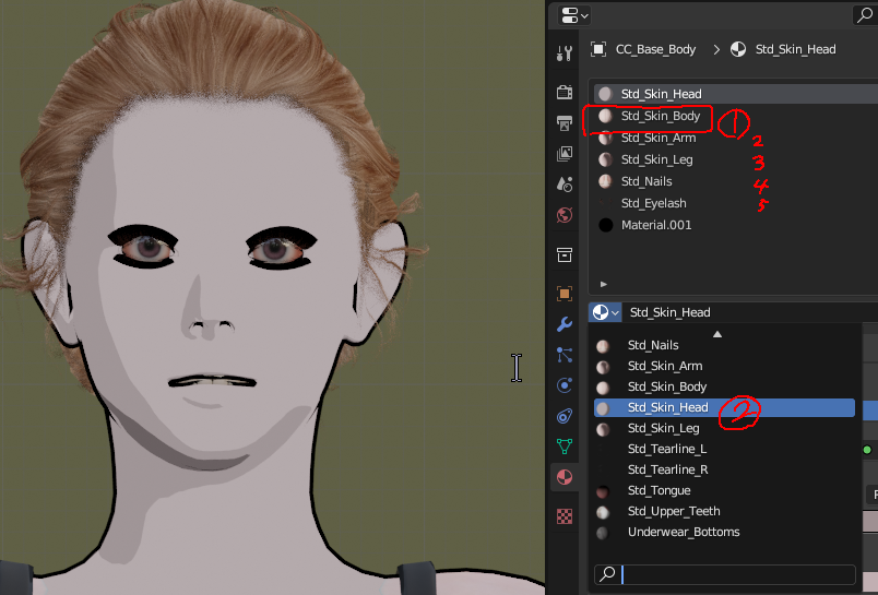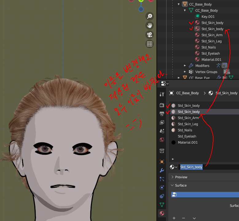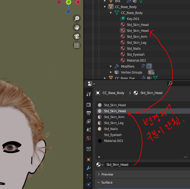아래처럼 하나씩 선택하여 Std_Skin_Head 로 변경해주면