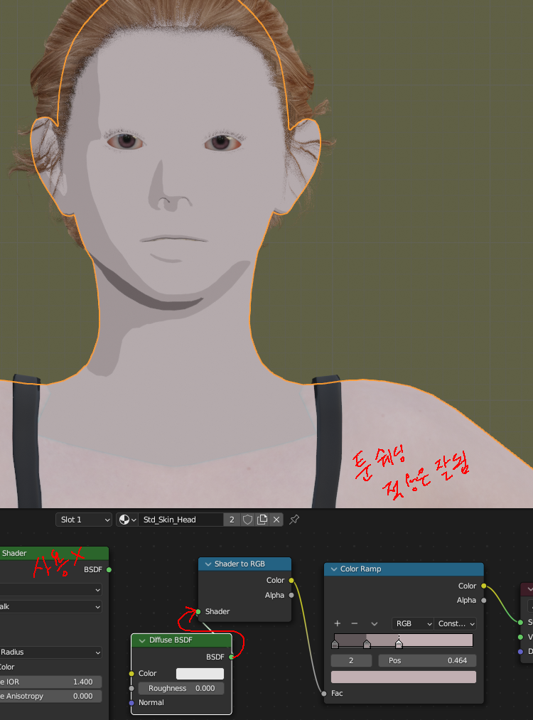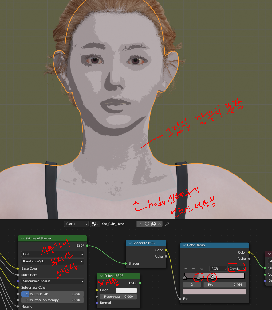 현재 위에서 Std_Skin_Head 에 만 툰쉐이딩을 적용해 놓았다.