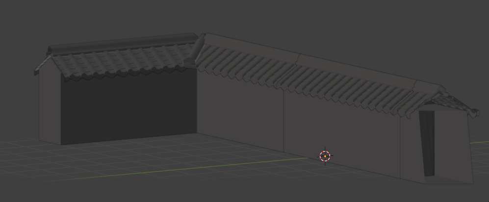 - 크기 줄이기: 담장을 선택하고 S 키를 눌러 아주 작게 줄이세요. (Dimensions의 Z값이 약 2~3m 정도가 될 때까지)