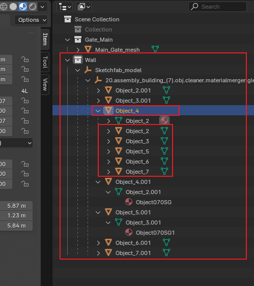 - 처음에 담장_A, 담장_B였다면, 다시 나누었을 때 담장_A.001, 담장_A.002 같은 식으로 이름이 바뀔 수 있습니다. (마지막에 선택했던 부모 객체의 이름을 따라갑니다.)