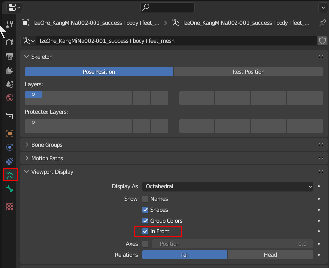 뼈가 앞으로 보이도록 아래 이미지 처럼 체크하자