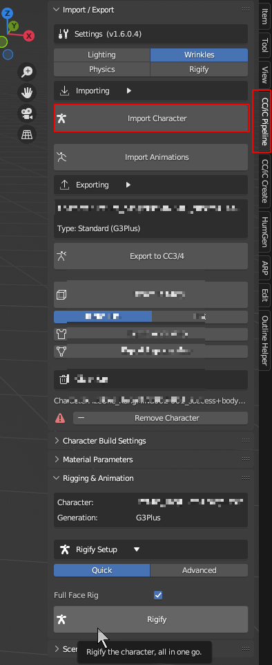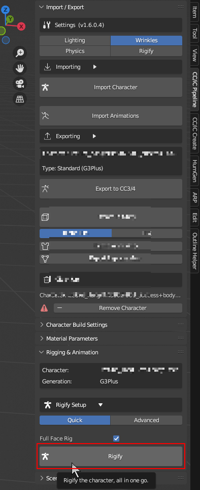 페이스 리깅을 포함하고 IK/FK 모든 Bone 를 생성 해준다
