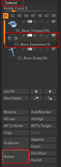 지브러쉬로 가서 제거 후 Goz 로 반영하고 블렌더로 OBJ 나 FBX 로 익스포트 해야한다