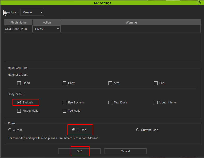 몸만 바꾸고 혀와 머리는 놔둔채로 머리와몸의 이격이 있어도 그냥 Goz 하면 RCC 로 잘 돌아와