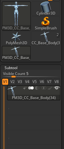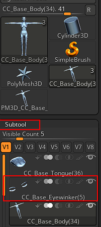 또한 서브툴에서 보면 눈썹이 없다. CC에서 나눠서 가져왔는데...