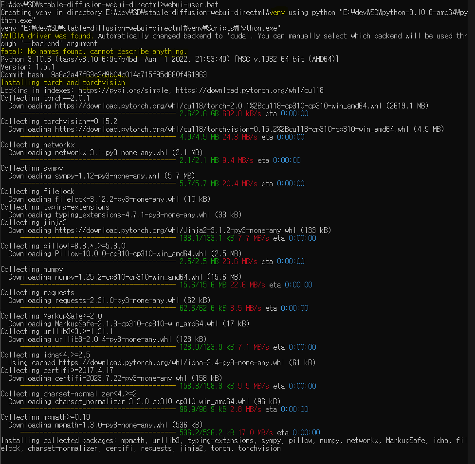 다시 CMD 창을 관리자권한으로 열고, webui-user.bat 를 실행합니다.