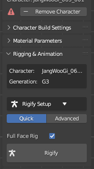 Rigify 할 수 있다고 버튼이 활성화 상태이다.