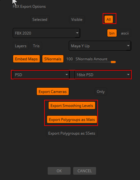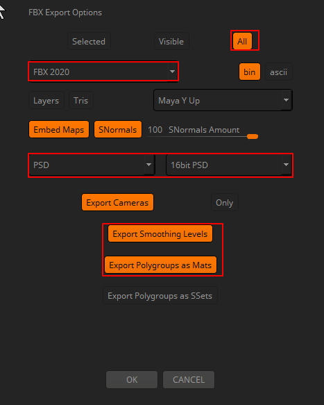 2. 지브러쉬에서 export 는 FBX 로 해야한다