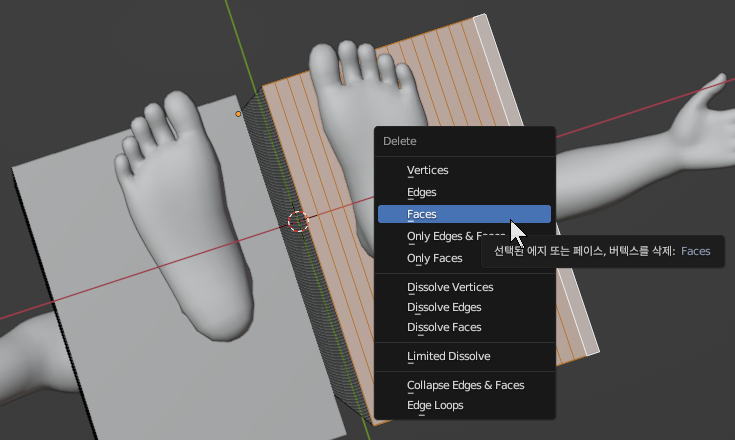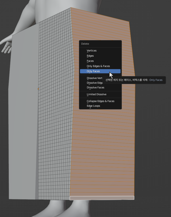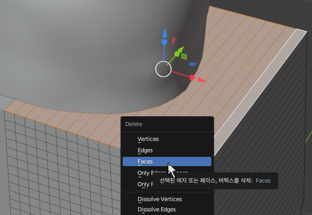 선택하고 지우는데 온리페이스를 해야 엣지는 남고 페이스가 지워진다