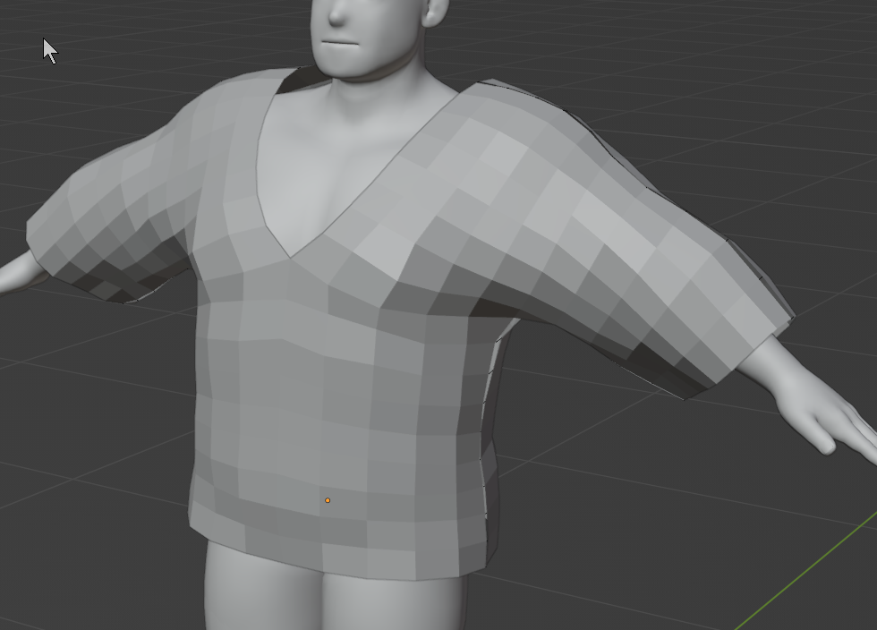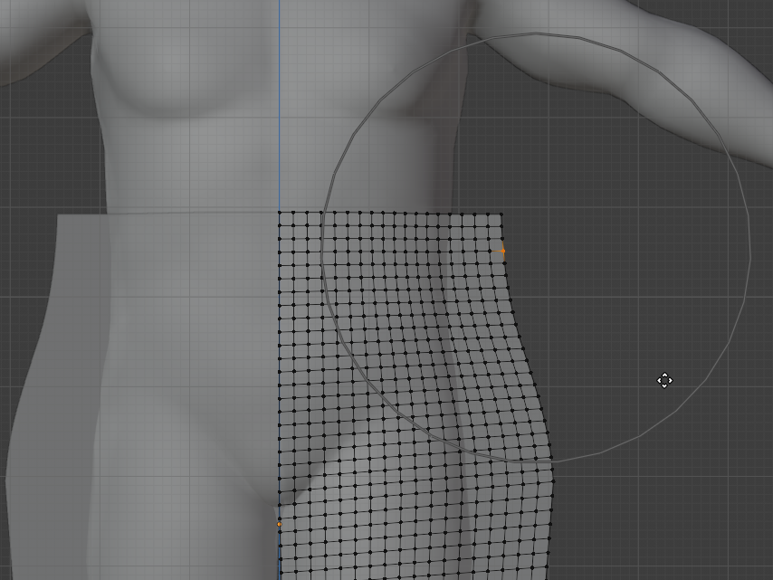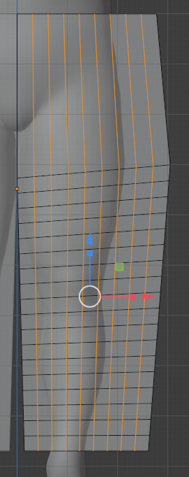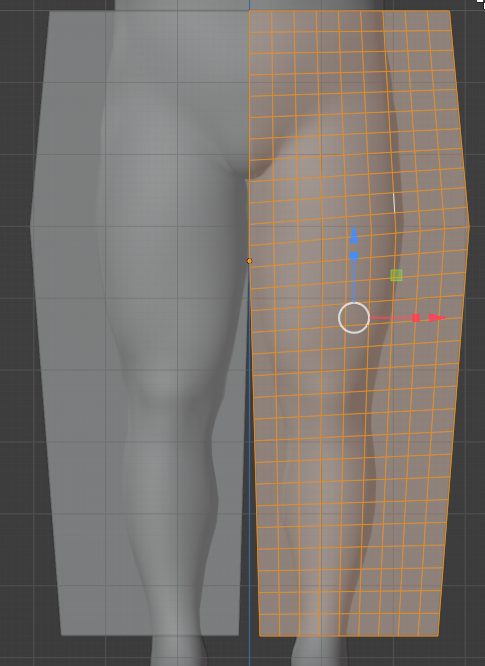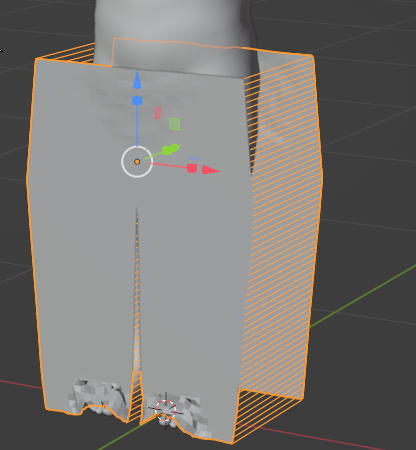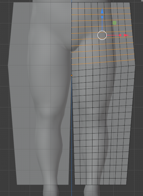 E키를 눌러 익스트루트 상태에서 뒤로 당겨서 바지의 뒷면쪽 까지 당긴다