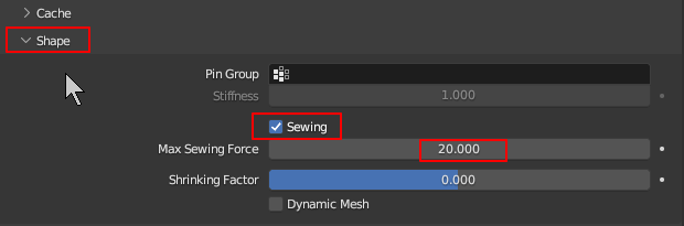 맥스 쏘잉 포스는 봉제선이 서로 당기며 움츠려 드는 힘을 말하는데 이것이 0으로 되어 있으면 무한정 되므로 20 정도로 주자. 숫자가 올라갈수록 한번에 확 당기는 힘이나 속도가 강하다