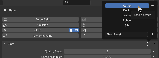 선택하면 메뉴가 사라지고 그러진 않고 데님과 면을 번갈아 눌러보면 아래 수치들이 옷감의 질을 변경해준다