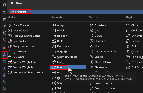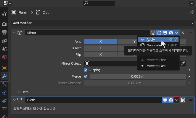 탭키로 오브젝트 모드로 돌아와서 반쪽 남은 플레인을 선택 후