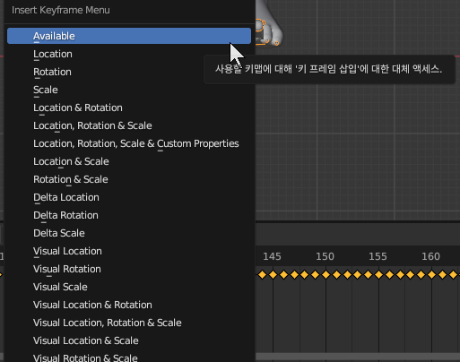키 프래임 다이아 모양을 하나 누른후 A 키를 누르면 모두 노랗게 선택이 된다