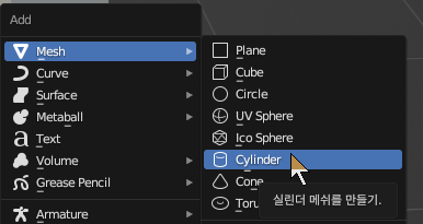 에디트 모드로 가서 실린더의 한 면을 선택하여 E 눌러서 늘리고,