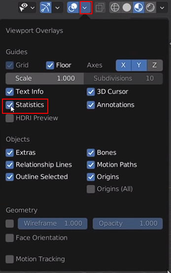 나무를 선택하고 면의 갯수등의 정보를 보자