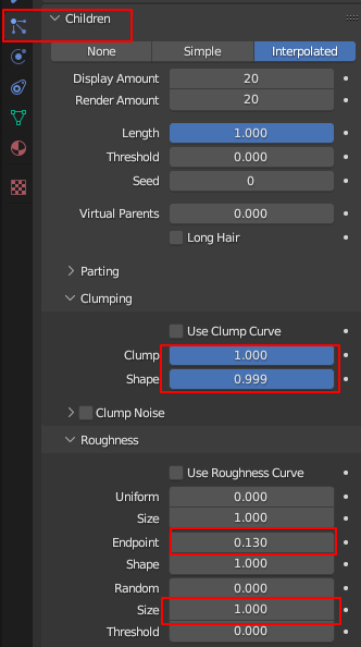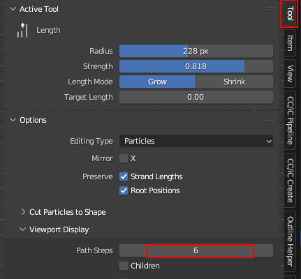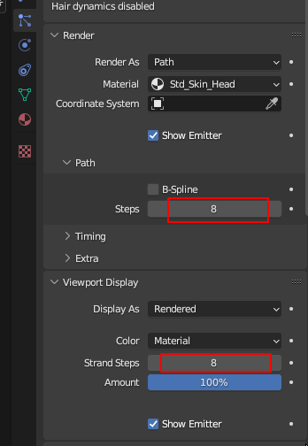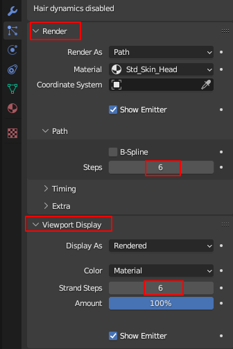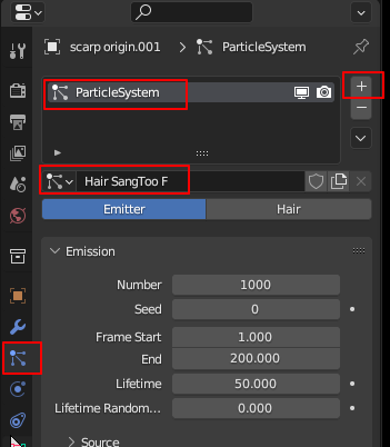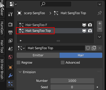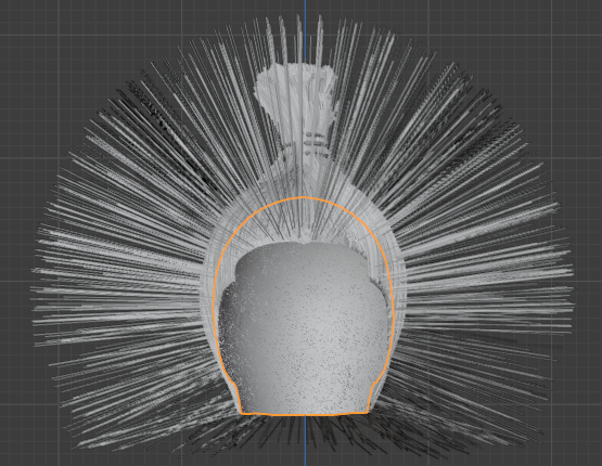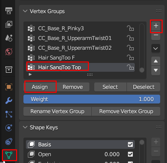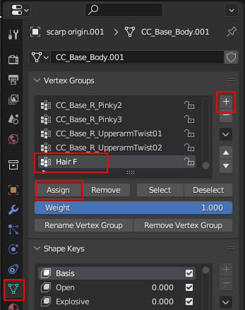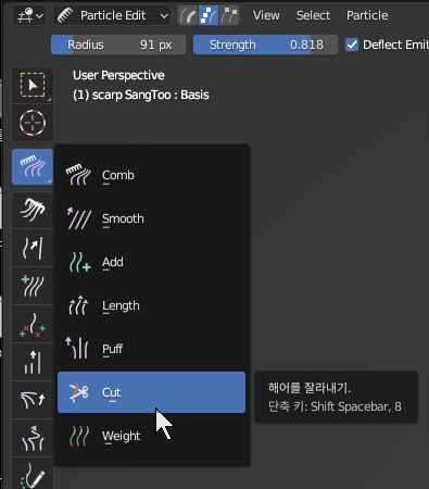 머리가죽 부위 선택하고 버택스 그룹 지정
