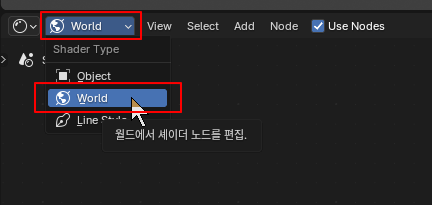 2. 블렌더의 왼쪽의 아래쯤에 창 부분을 바꾼다.