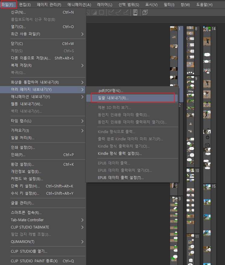 클립스튜디오 맞춤법 쉽게 검수하기 1. 전체.cmc 를 열고2. 아래 메뉴를 클릭 3. 창에 대사가 다 보인다 4. (ctrl + A 하지말고) 꼭! shift + 좌클릭 을 맨 위에 대사부터 눌르자. 그러면 첫 한칸 자체가 선택된다. 5. 그 상태에서 맨 아래쪽 대사로 이동하여 다시, Shift + 좌클릭을 누르면 전체 선택이 된다. - 복사를 한다 6. 복사한 후, 포탈사이트보다 주직사이트 (잡코리아, 사람인)의 맞춤법 검사기를 추천한다. - 잡코리아 검사기는 서비스 종료했음..... 사람인을 이용하자 (사람인은 4000자 까지만 되고, 나머지는 무시한다)https://www.saramin.co.kr/zf_user/tools/character-counter?srsltid=AfmBOopdISrqHCu2EVLLF5-UuK28swswQ.. Toon/Clip Studio 2025.01.20
